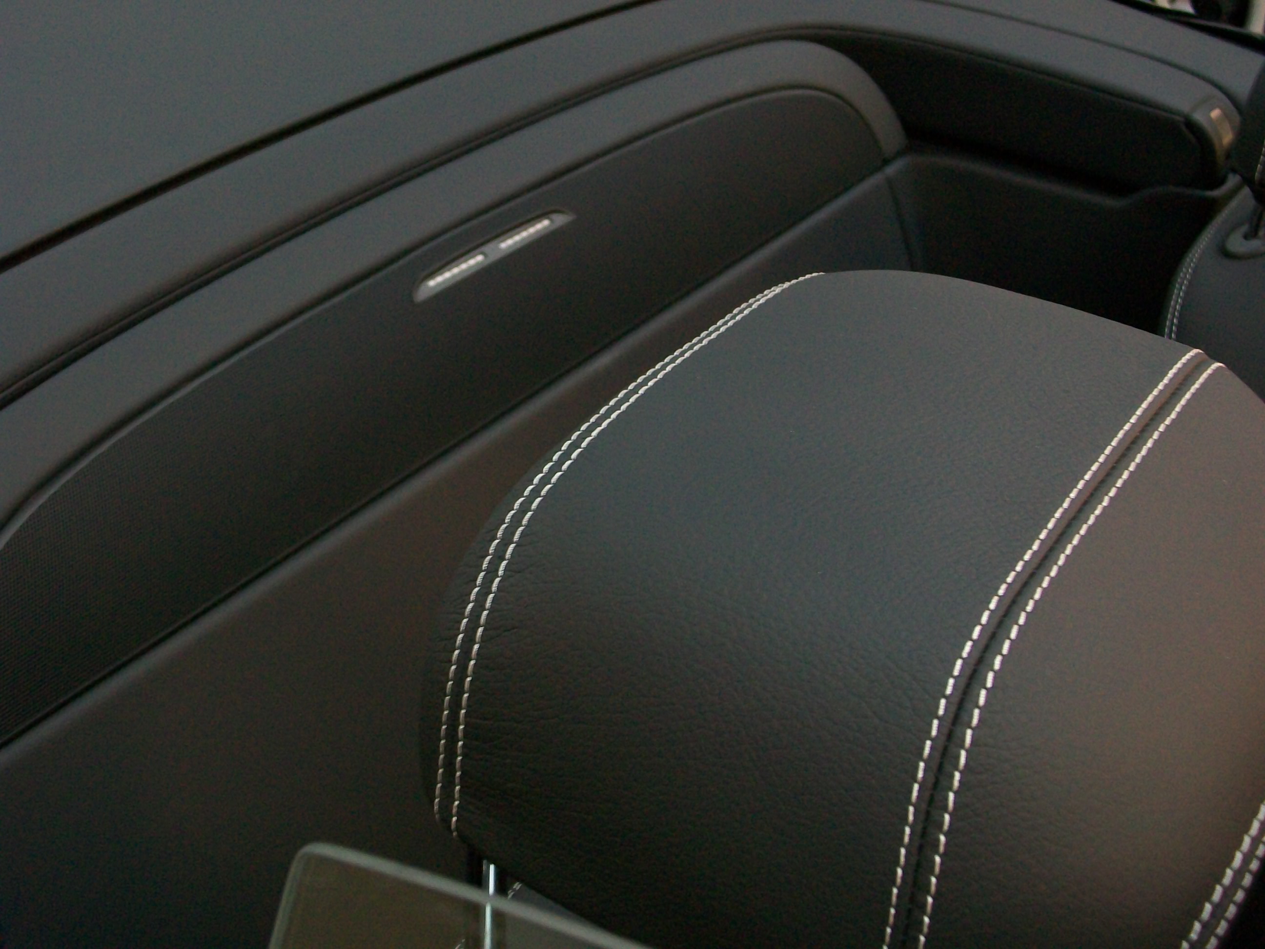 Rear Display . The rear display is normally mounted on the roof lining to the rear of the vehicle . The picture shows the the system we fitted to a 2011 Mercedes SL. This display was flush fitted in the rear sepaker mesh to help maintain a factory fitted look .
